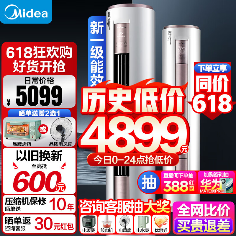 美的(Midea)美的空调大2匹新一级能效变频冷暖家用柜机酷省电 智行三代自清洁升级款WiFi智控客厅圆柱立式价格:4899.00元!