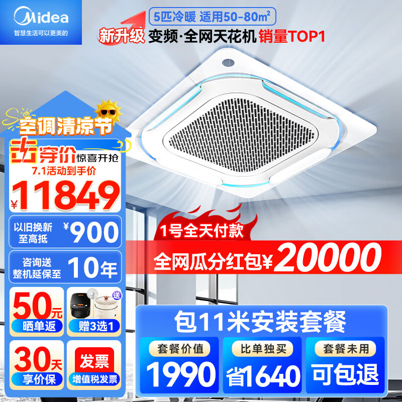美的(Midea)中央空调天花机吸顶空调5匹变频冷暖新一级能效包11米铜管安装380V RFD-120QW/BSDN8Y-D(B1)A价格:11849.00元!