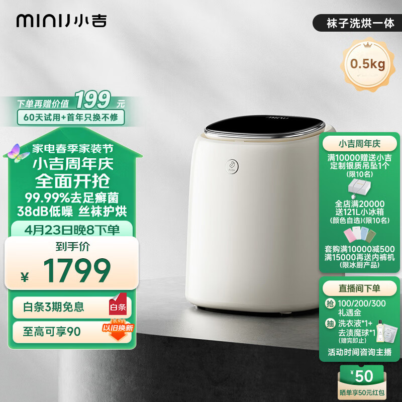 小吉(MINIJ)0.5kg洗袜子洗衣机除菌洗袜子神器袜子专用小型迷你洗烘一体变频洗衣机S10-M2价格:1899.00元!