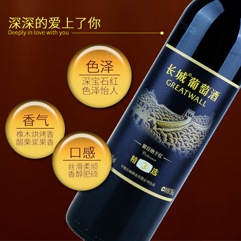商品名称:长城精选3彩标解百纳干红葡萄酒