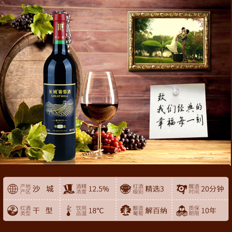 【点击查看长城精选3彩标解百纳干红葡萄酒活动分享】