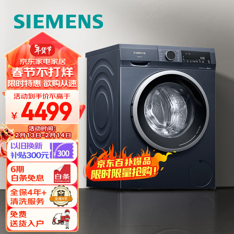 西门子(SIEMENS)10公斤滚筒洗衣机全自动 除菌洗烘一体机 智能烘干 热风清新 均匀烘干 湖蕴蓝 X14W价格:4499.00元!