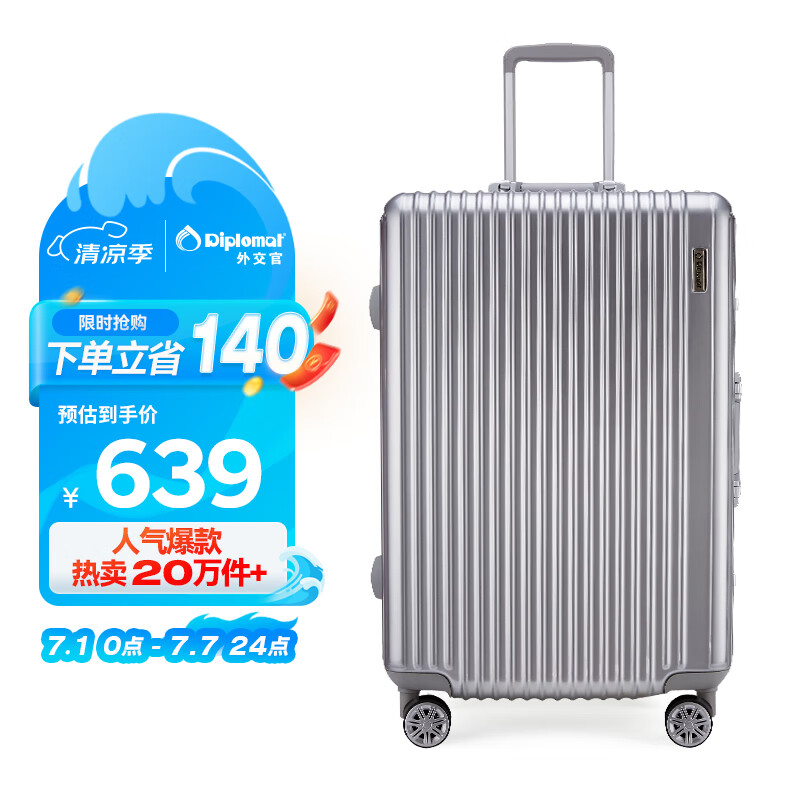 Diplomat外交官铝框行李箱大容量25英寸拉杆箱星光男女密码旅行箱TC-9033价格:779.00元!