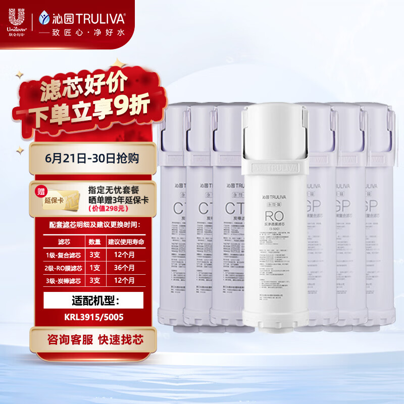沁园(TRULIVA)小白鲸小水钻KRL3915/5005三年无忧7支滤芯套餐【RO膜*1+附件6支(复合*3+炭棒*3)】价格:1984.00元!