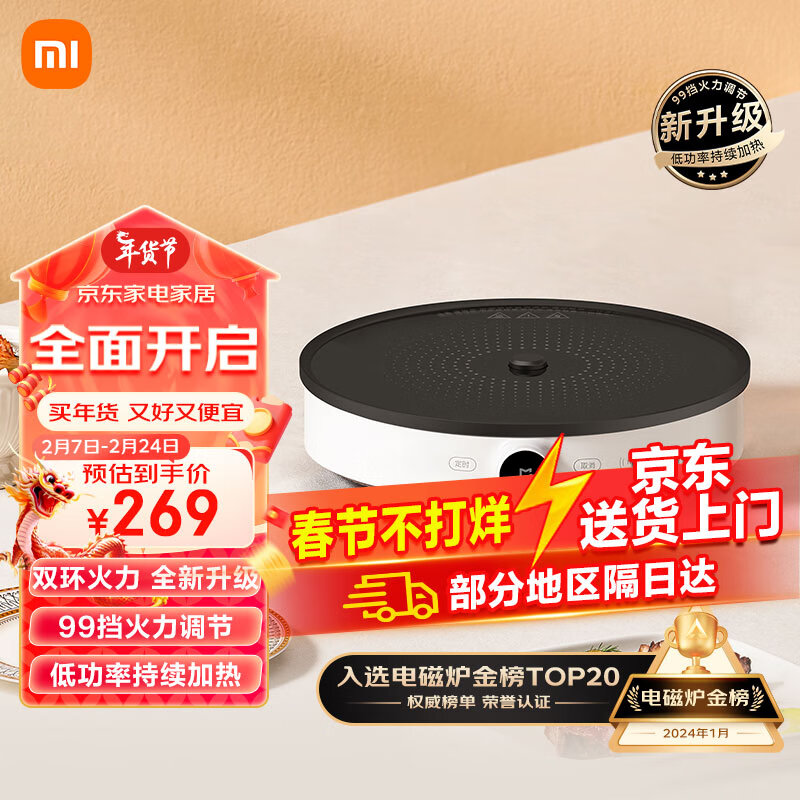 米家 小米电磁炉2 双环火力加热 99挡火力调温 OLED屏幕 低温持续加热 2100W大功率火锅电磁炉价格:249.00元!