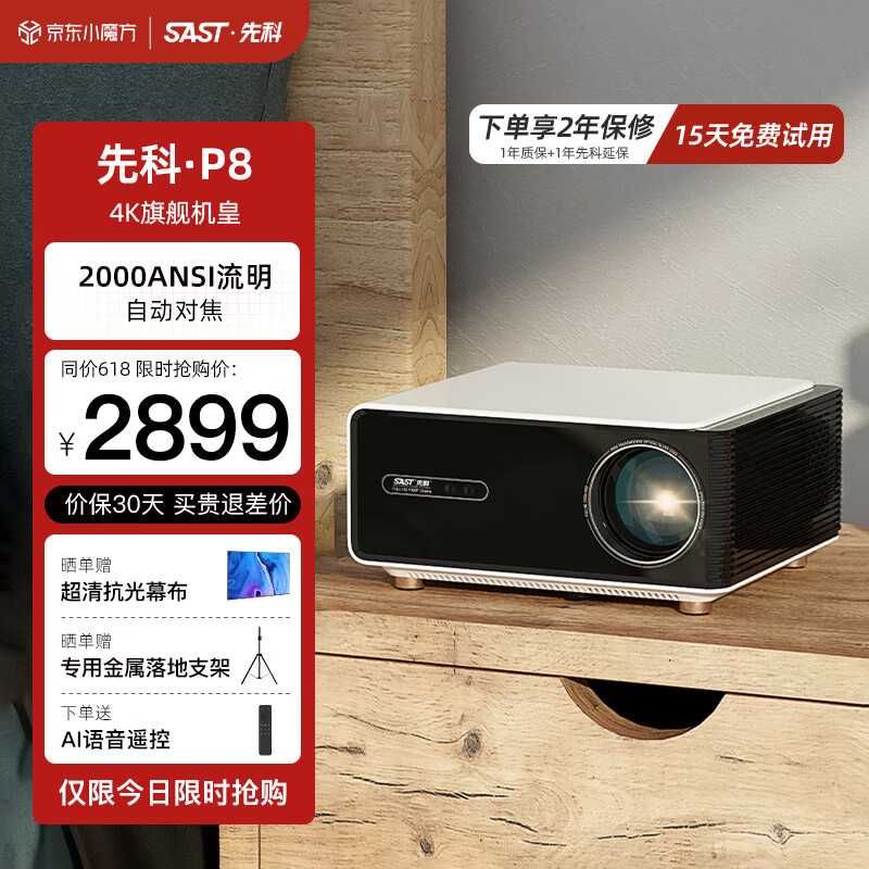 先科(SAST)P8投影仪办公投影机家用家庭影院超清电视(自动对焦 自动校正 自动入幕 全封闭式光机i)价格:3099.00元!