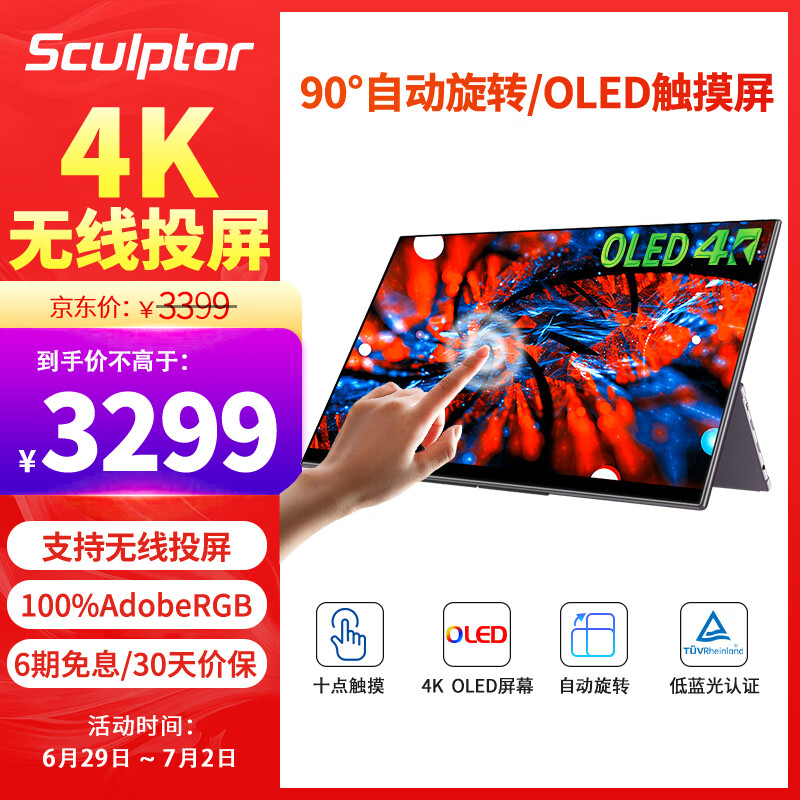 雕塑家15.6英寸4K OLED 便携式显示器专业级手机电脑笔记本外接拓展屏幕无线投屏拓展ps4/5移动副屏价格:3399.00元!