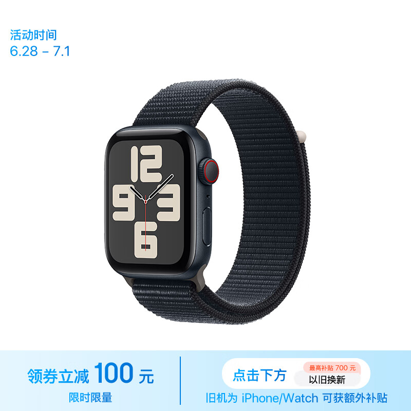 Apple/苹果 Watch SE 2023款智能手表GPS+蜂窝款44毫米午夜色铝金属表壳午夜色回环运动型表带MRHD3CH/A价格:2599.00元!