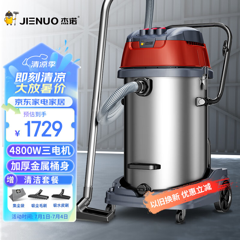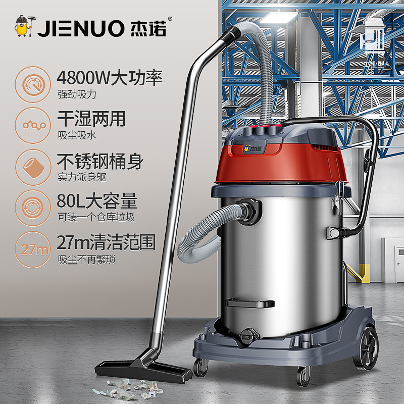 杰诺4800W大功率强大吸力干湿两用商用工业大型桶式吸尘器酒店宾馆工厂车间JN-701-80L-3价格:1729.00元!