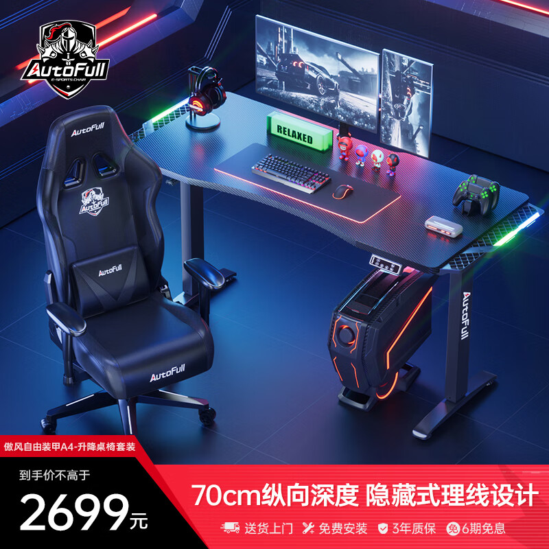 傲风自由装甲A4电竞桌椅套装电动升降电脑桌游戏桌办公书桌 1.6m桌面价格:2999.00元!