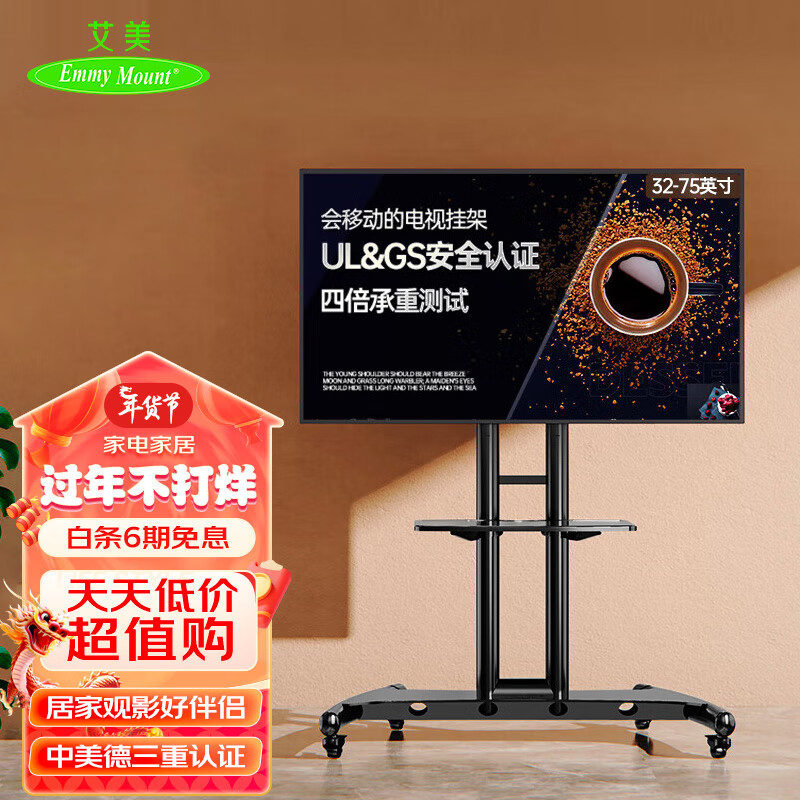 Emmy Mount/艾美32-75英寸通用移动电视支架电视支架落地电视机移动推车/商用家用一体机显示器电视移动挂架价格:409.00元!