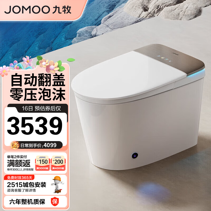 九牧(JOMOO)无水压限制智能马桶节水泡沫盾自动翻盖智能坐便器ZS770 305坑距价格:4649.00元!