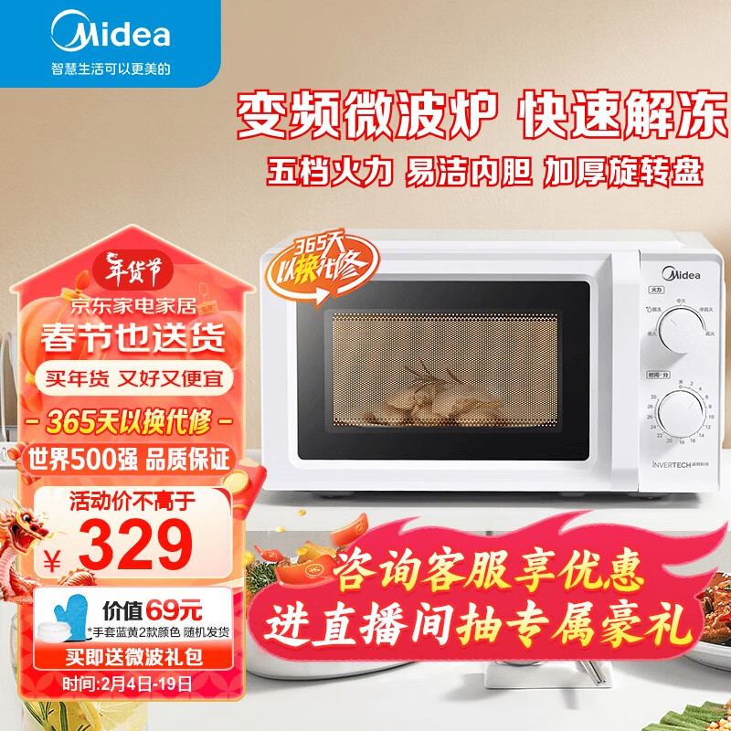 美的(Midea)变频家用微波炉? 经典双旋钮 360°转盘加热? 智能解冻 五档火力18L容量(M13J)价格:359.00元!