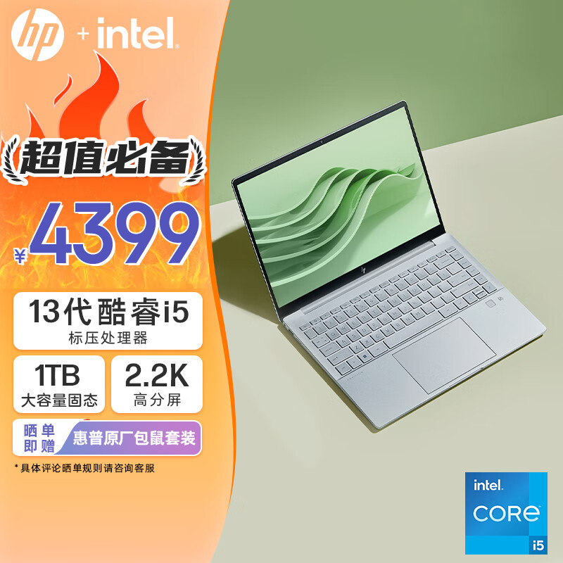 惠普HP 星Book Pro 14英寸轻薄笔记本电脑(13代酷睿i5-13500H标压 16G 1TB 2.2K高色域屏 指纹背光)银价格:4399.00元!
