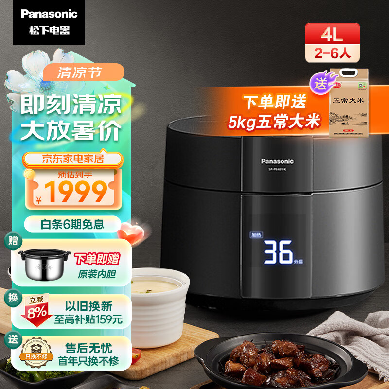 松下(Panasonic)4L电饭煲 大容量IH电饭煲 24H智能预约 三段可选 多功能电饭煲 SR-PE401-K价格:1999.00元!