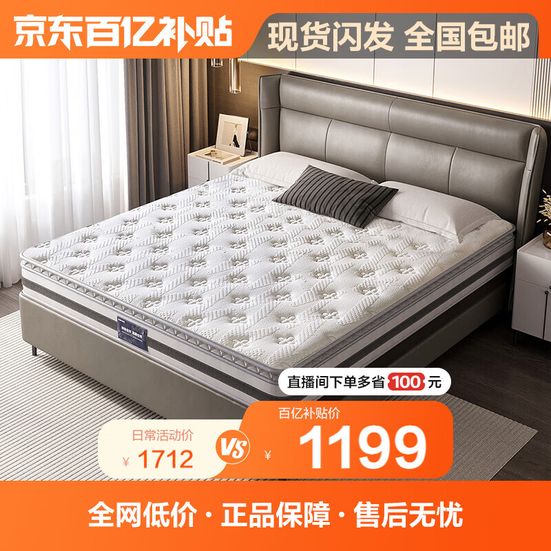 全友家居 泰国进口乳胶床垫厚 独立袋装弹簧两面可用偏软105110价格:1199.00元!