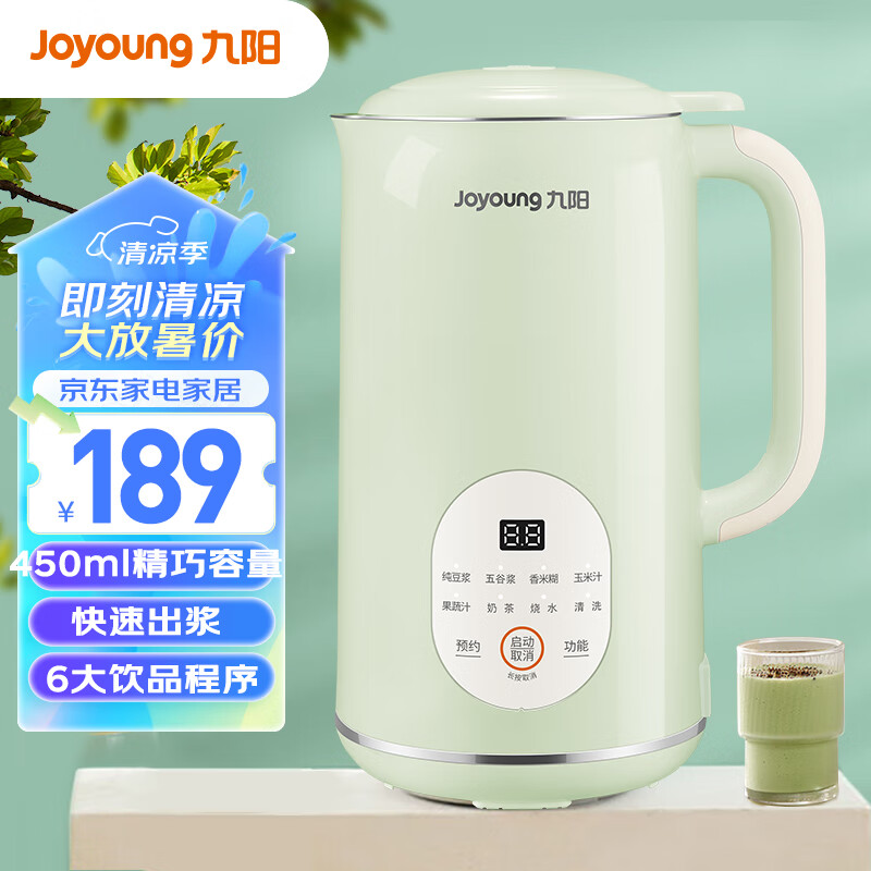 九阳豆浆机450ml精巧容量易收纳 快速出浆细腻研磨1-12H预约多功能料理机破壁机DJ04X-D126价格:199.00元!
