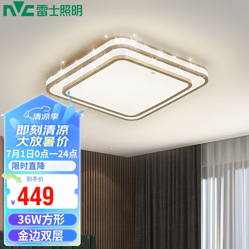 雷士照明(NVC)LED吸顶灯轻奢浪漫书房餐厅卧室灯具时尚晶宏双层金边高透光36W价格:449.00元!
