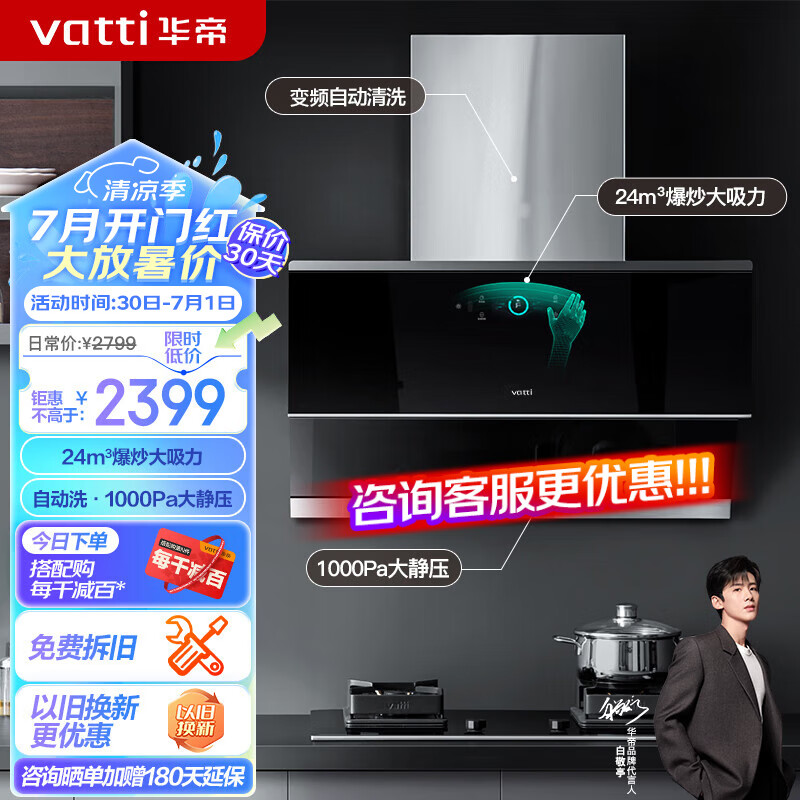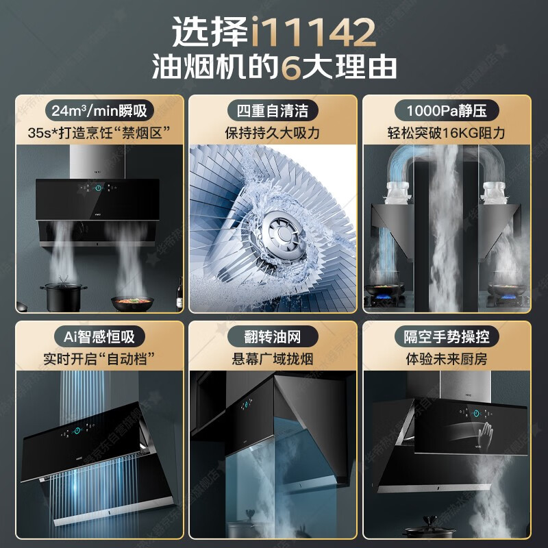 华帝(VATTI)24立方大吸力 华帝官方顶侧 双吸式油烟机 变频自动洗 抽油烟机家用 挥手智控 AI烟感巡航 i11142单烟机价格:2299.00元!