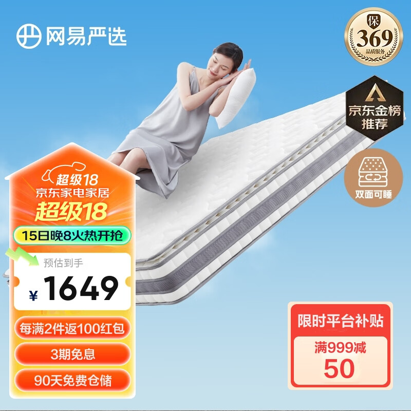 网易严选AB面弹簧床垫1.8*2米 乳胶床垫席梦思 奢睡款 抑菌防螨 独袋弹簧价格:1899.00元!