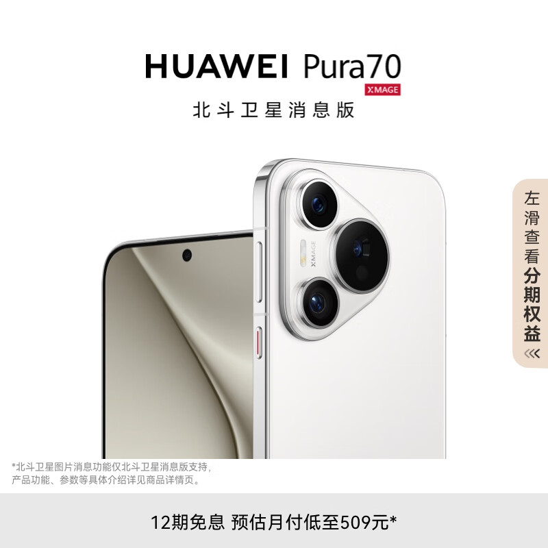 华为(HUAWEI)Pura 70 12GB+512GB 雪域白 北斗卫星消息版 超高速风驰闪拍 第二代昆仑玻璃 华为P70智能手机价格:6099.00元!