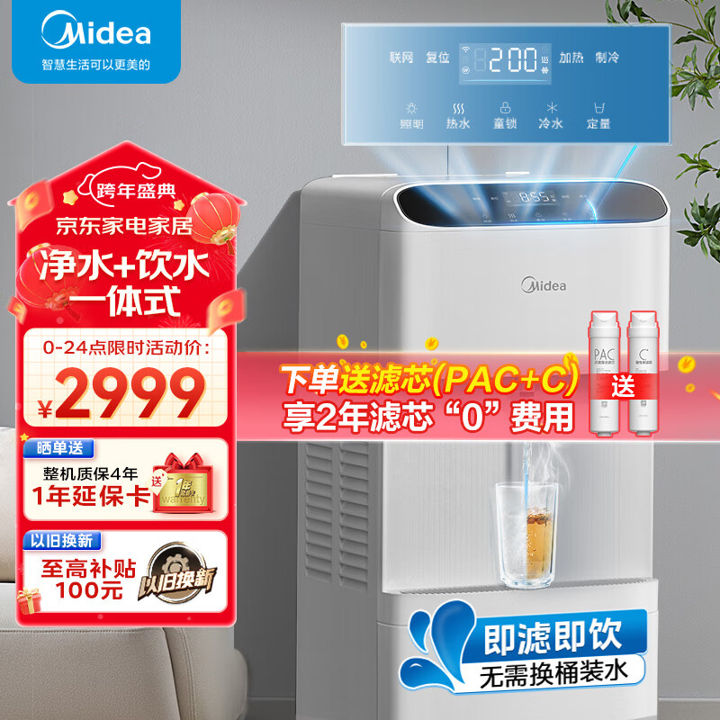 美的(Midea)冰川立式净饮水一体机 家用客厅办公室 速热压缩机制冷 UV杀菌RO反渗透 直饮加热净水器JL2258S-RO价格:2999.00元!