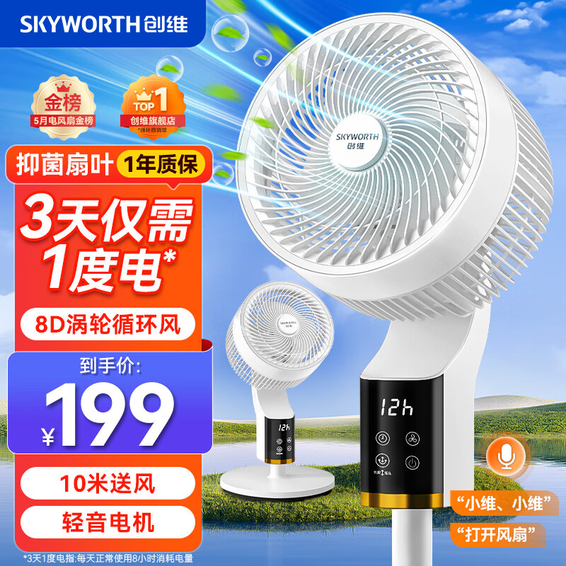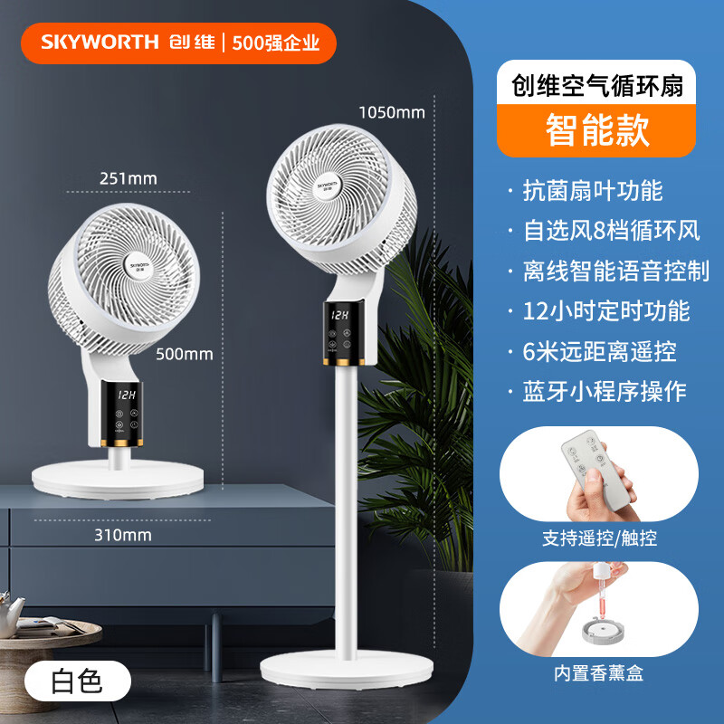创维(Skyworth)【直播热销】电风扇空气循环扇落地扇智能语音遥控家用大风力轻音台地两用冰岛系列Q859白色价格:219.00元!