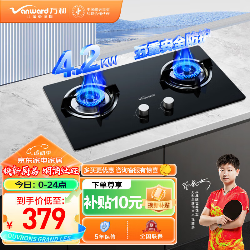 万和(Vanward)燃气灶4.2kW大火力 嵌入式台式两用灶具家用双灶 煤气炉煤气灶钢化玻璃 JZY-B3L20(液化气)价格:378.00元!