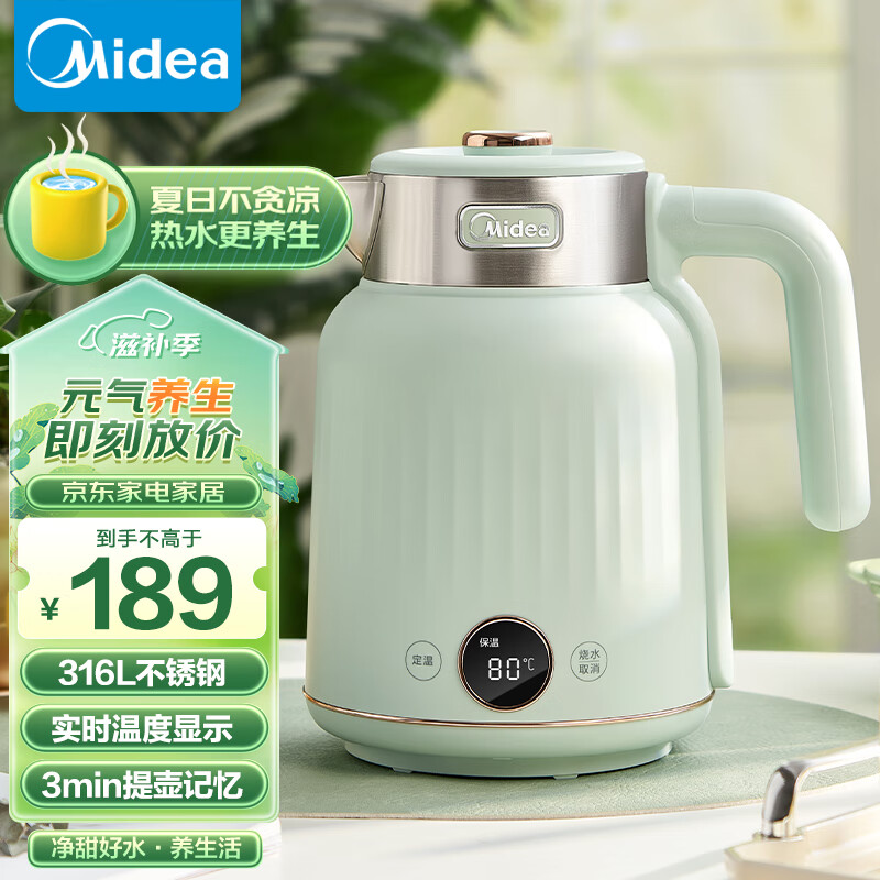 美的(Midea)电水壶烧水壶 热水壶电热水壶 多段控温保温恒温开水壶316L不锈钢1.7L大容量双层防烫无缝内胆53-Q价格:189.00元!