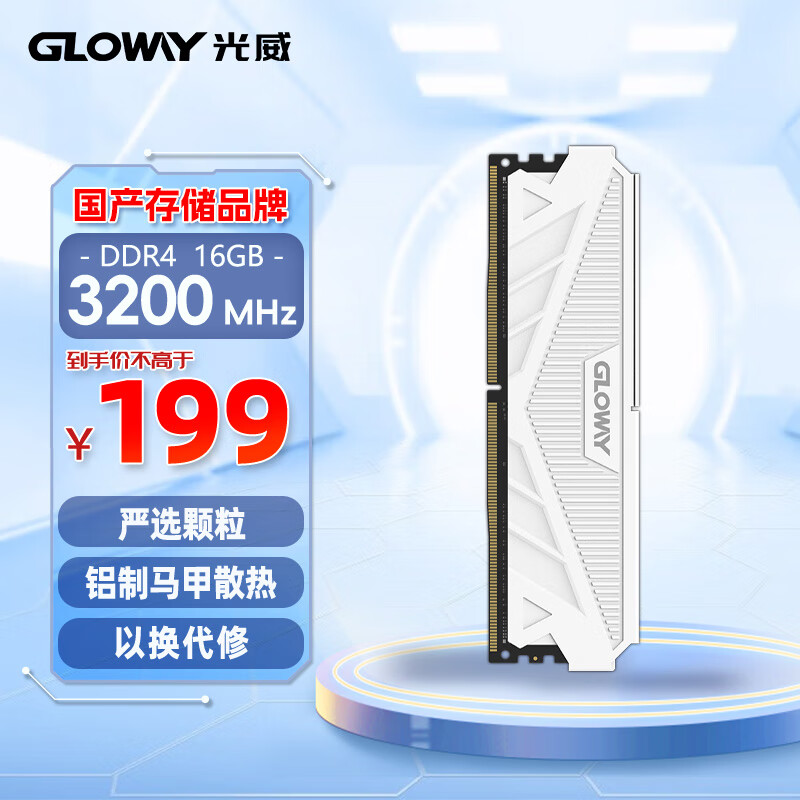 光威(Gloway)16GB DDR4 3200 台式机内存条 天策系列价格:195.00元!