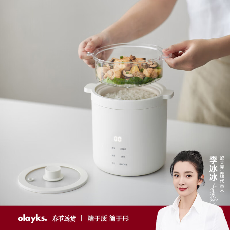 olayks迷你电饭煲 小型电饭锅 0氟陶瓷釉一人mini 学生宿舍快煮不粘锅 1-2人1.2升+蒸笼价格:199.00元!