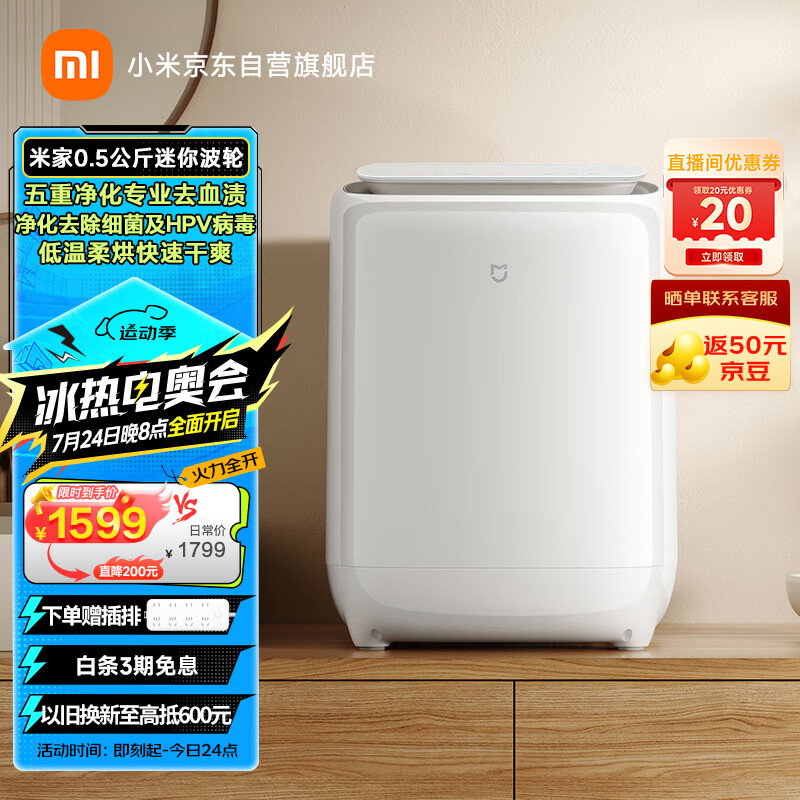 米家小米出品内衣全自动洗衣机小型迷你高温煮洗除菌去血渍洗烘一体内裤洗衣机XHQB05MJ101W价格:1599.00元!