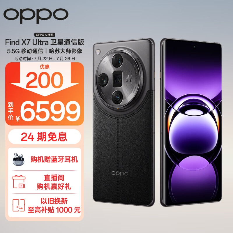 OPPO Find X7 Ultra 卫星通信版 16GB+512GB 松影墨韵 四主摄 哈苏影像 第三代骁龙8 5.5G 拍照 AI手机价格:6799.00元!