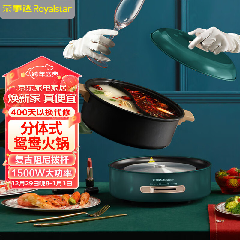 荣事达(Royalstar) 电火锅 分体鸳鸯锅 家用电火锅 多功能电热锅电煮锅电炒锅5L涮锅大容量RHG-50FY价格:299.00元!