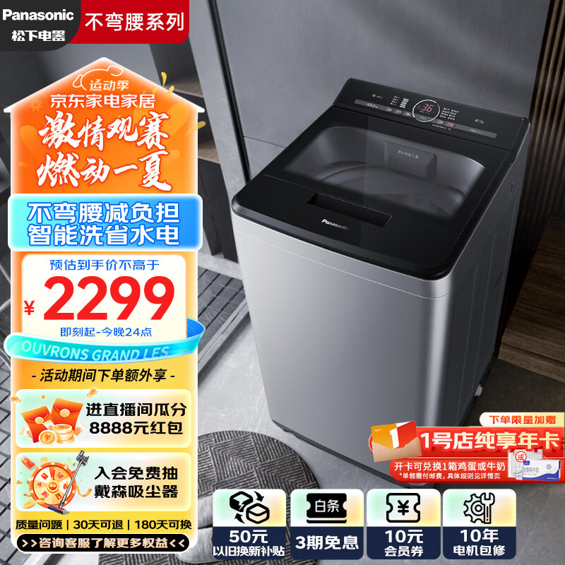 松下(Panasonic)波轮洗衣机全自动 10公斤大容量 一键操作 桶自洁免清洗 以旧换新 不弯腰系列XQB100-USLKA【小U】价格:2299.00元!