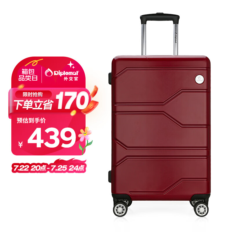 Diplomat外交官商务万向轮拉杆箱男女结婚旅行箱TSA密码行李箱TC-6903红色价格:609.00元!