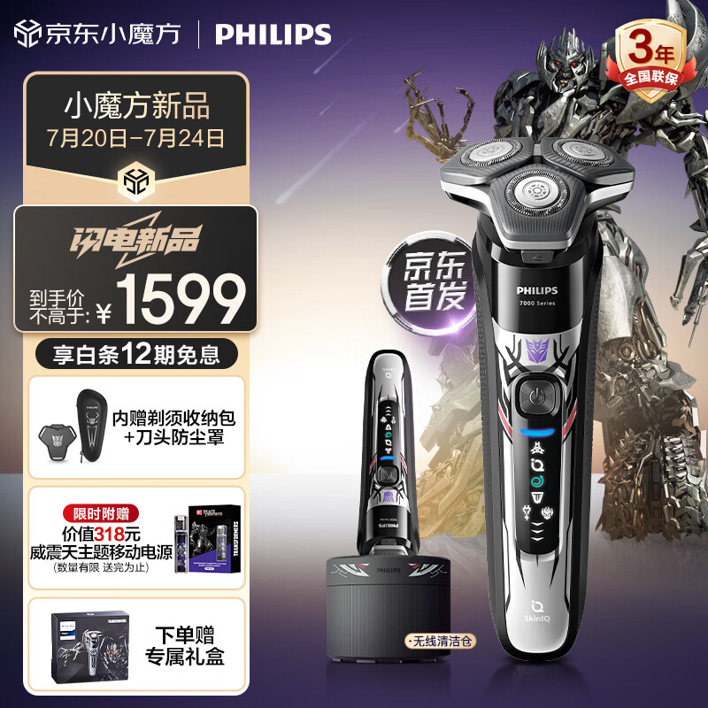 飞利浦(PHILIPS)电动剃须刀 蜂巢7系变形金刚威震天联名 SkinIQ肌能感应 微提切科技刮胡刀 送男友七夕情人节礼物价格:1599.00元!