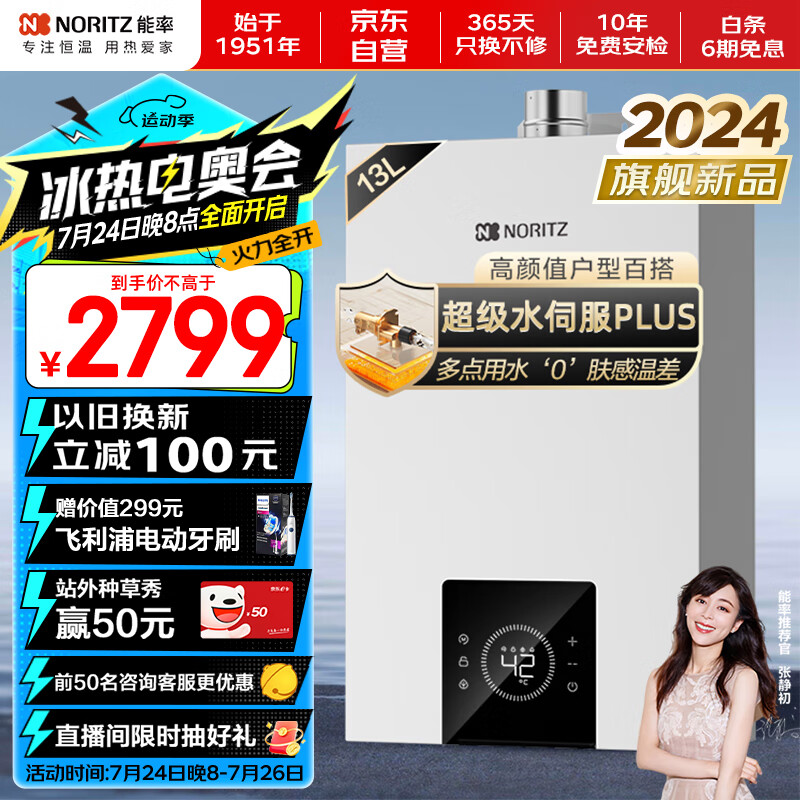 能率(NORITZ)【小云朵】13升燃气热水器 天然气 变频水伺服恒温 下置风机 综合降噪 GQ-13EA3AFEX以旧换新价格:2799.00元!
