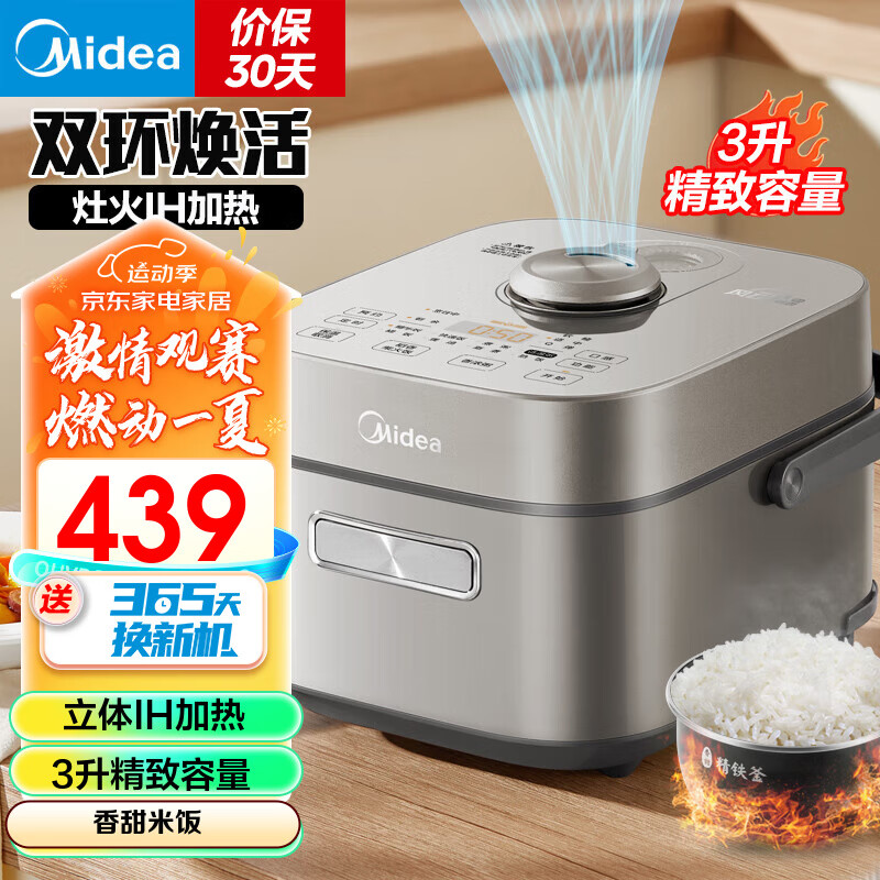 美的(Midea)电饭煲 家用IH加热智能触控家用升级预约多功能电饭锅一级能效 稻香3.0双环焕活IH加热 3L MB-HS353价格:599.00元!
