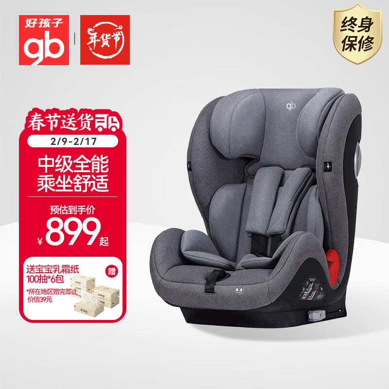 好孩子(gb)高速汽车儿童座椅ISOFIX+TOP TETHER接口9个月-12岁CS790灰色价格:1199.00元!