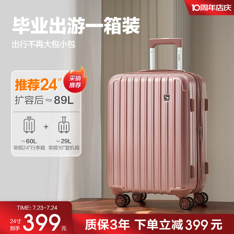 爱华仕行李箱女拉杆箱男旅行箱大容量密码箱24英寸可扩展学生箱玫瑰金价格:798.00元!