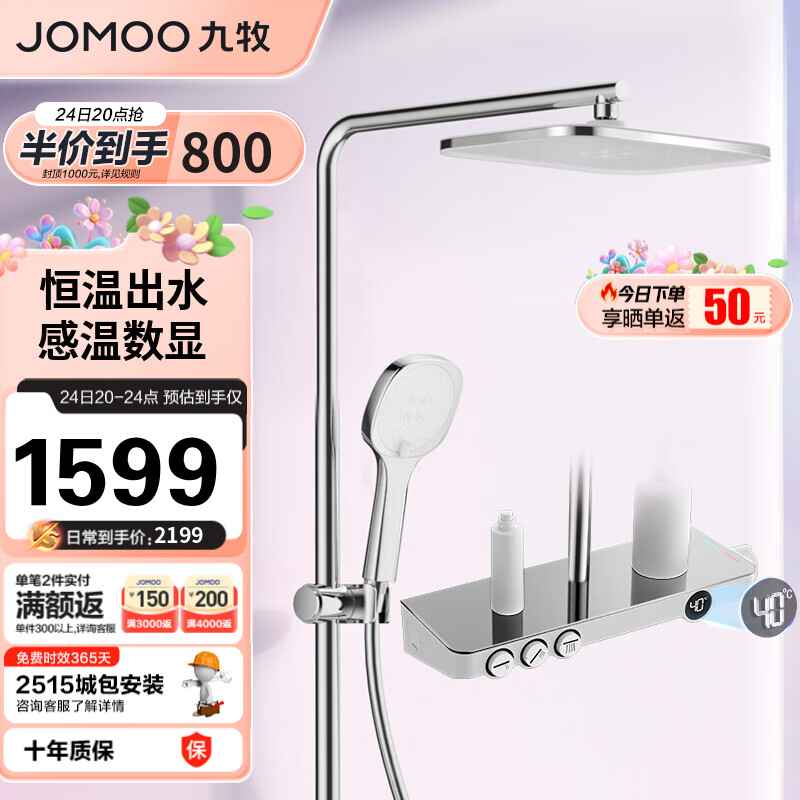 九牧(JOMOO)数显恒温淋浴花洒套装置物架增压除垢淋浴器 26177-624/KB-1价格:1899.00元!