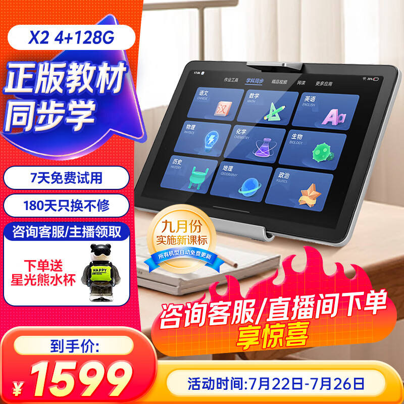 步步高学习机X2 4+128G 10.1英寸 护眼平板电脑 英语学习机 家教机 学生平板 点读机 早教机价格:1599.00元!