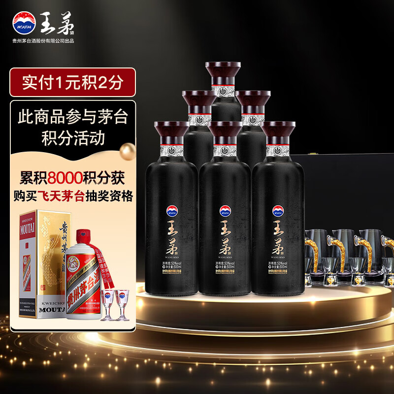 茅台 王茅 祥雅黑茅 酱香型白酒 53度 500ml*6瓶+6壶6杯套装 商务送礼价格:5880.00元!