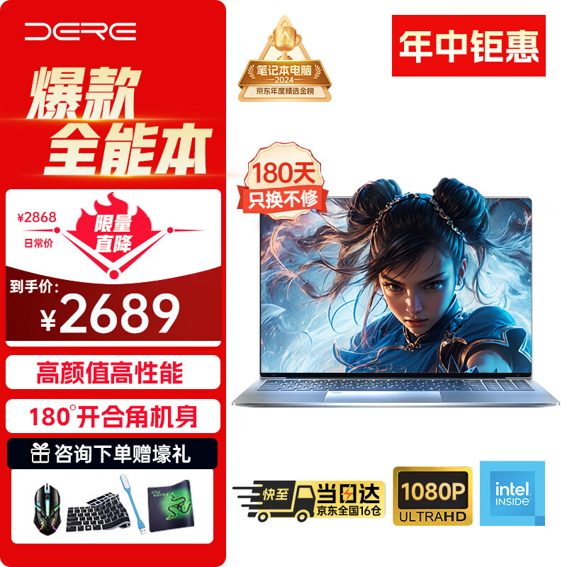 戴睿(dere)商务旗舰16英寸笔记本电脑商务轻薄学生网课设计学习办公游戏绘图手提 英特尔32G + 2TBG 琥珀银价格:2689.00元!