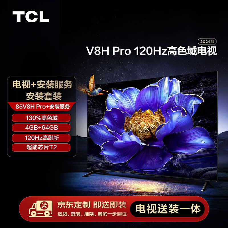TCL【送装一体版】安装套装-85V8H Pro 85英寸 120Hz高色域电视 V8H Pro+安装服务含挂架价格:5498.00元!
