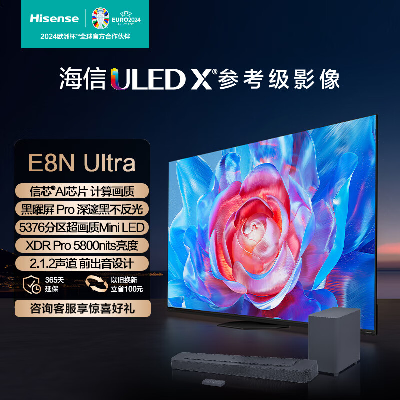 海信ULED超画质电视 85E8N Ultra+Bar500沉浸追剧套装 85英寸 ULED X Mini LED 液晶平板电视机价格:20598.00元!