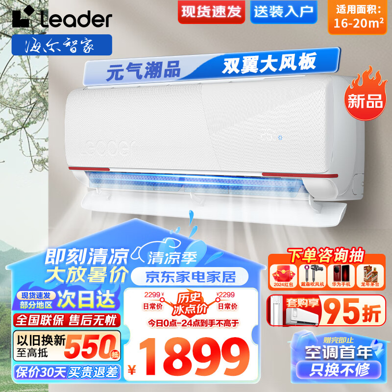 Leader空调1.5匹挂机海尔出品元气新品新一级能效变频冷暖自清洁卧室家用挂式空调省电 以旧换新 35LKG81价格:1899.00元!