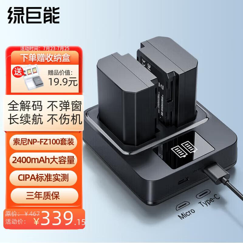 绿巨能(llano)索尼NP-FZ100电池a7m4相机电池a7m3/a7c/a7r3/a7r4/a6600数码微单相机电池充电器套装2400mAh价格:399.00元!