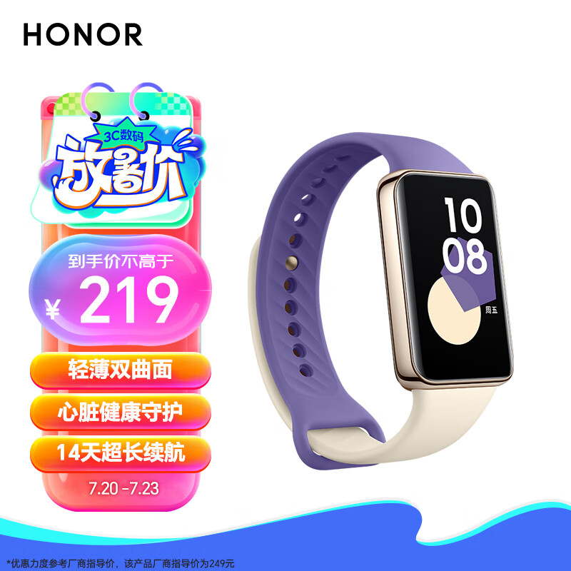 荣耀(HONOR)手环9 晨辉紫 轻薄双曲面 心脏健康守护 14天超长续航 智能手环运动手环 送男友价格:219.00元!